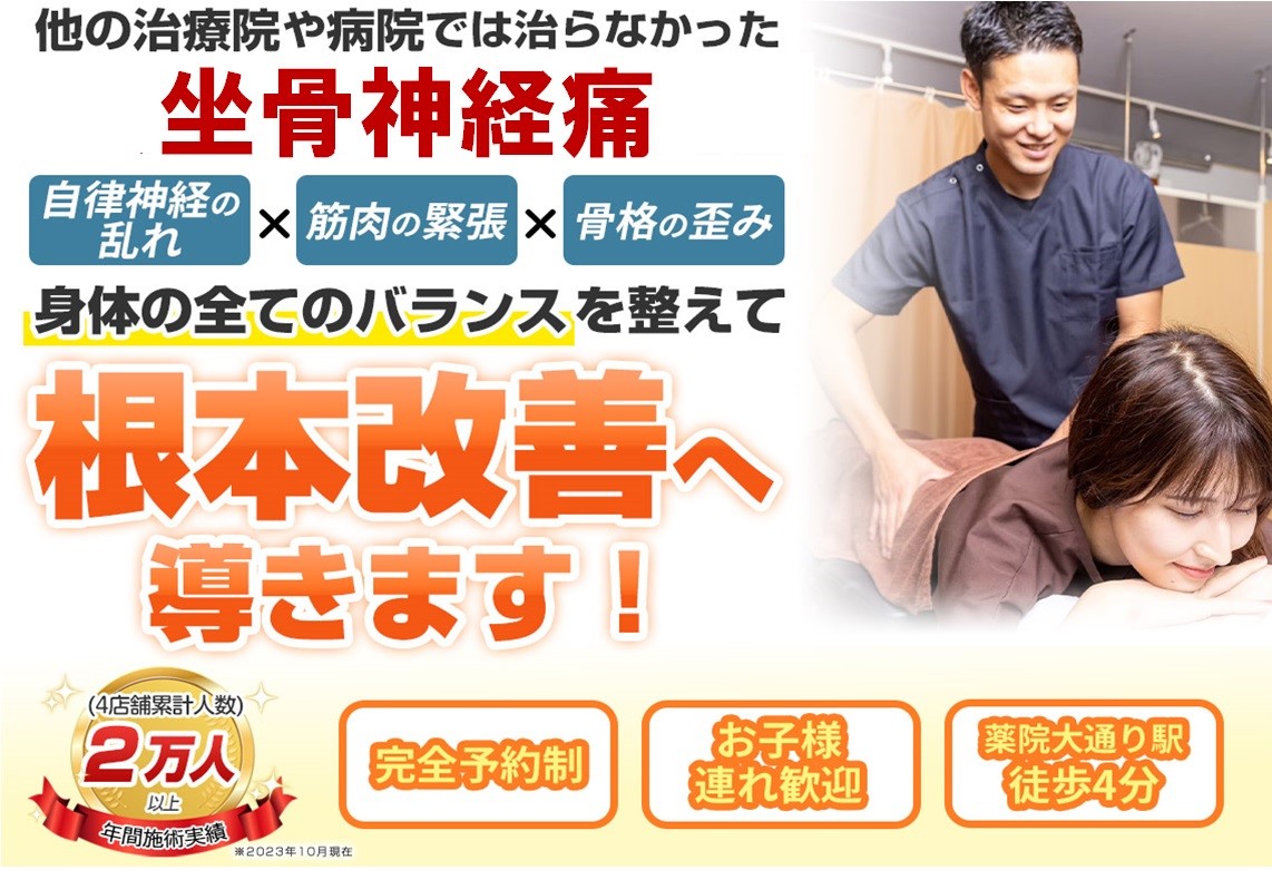 福岡市中央区で坐骨神経痛の根本改善を目指すなら「やくいん整骨院」にお任せ下さい!